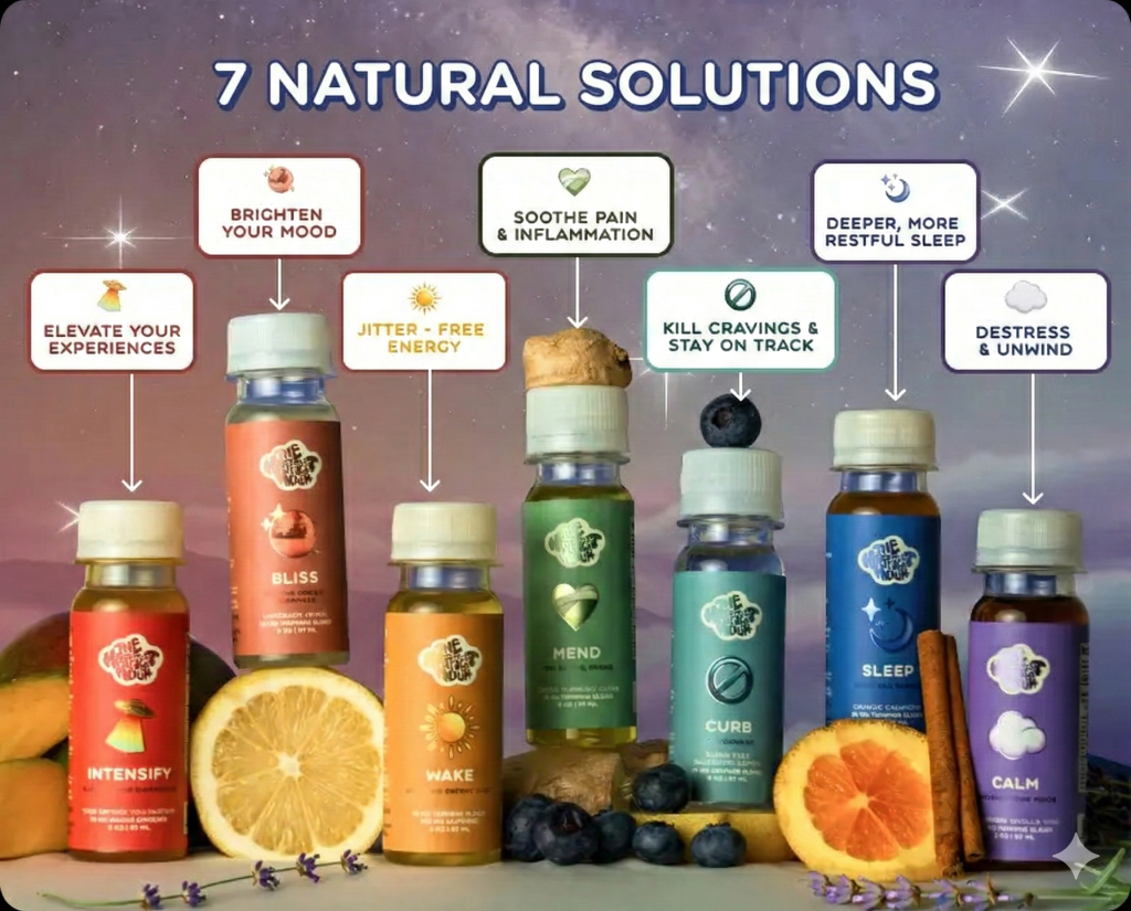 The calm helps me in my most anxious times the bliss will put me in a better mood. The mend helps to heal all of my inflammation. Sleep helps to put and keep me to sleep and the intensify helps to intensify them all and the wake has 100 msg of caffeine plus terpines to keep you awake without all of the jitters 💕 forever a customer